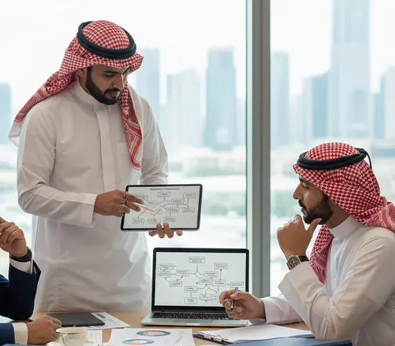 نُعد السياسات والأدلة التشغيلية (SOPs) بصياغة احترافية دقيقة، مع توثيق مسارات العمل والإجراءات التفصيلية لكل إدارة.